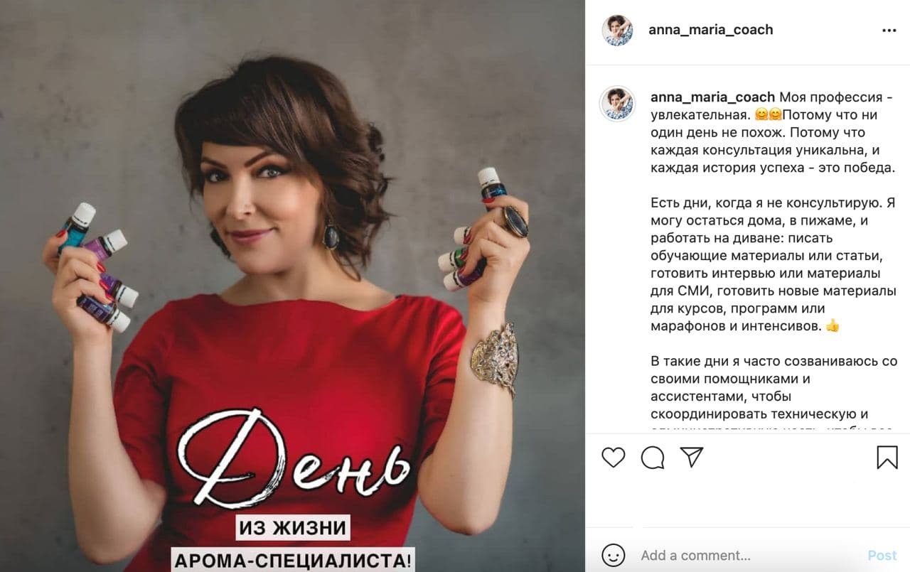 За несколько месяцев работы с коучем, ароматерапией и аромапсихологией я смогла достичь поставленных целей: получила дипломы, создала свою практику. Даже набралась смелости сказать мужу, что я от него ухожу. Затем я смогла от него уйти: больно, тяжело, но смогла.