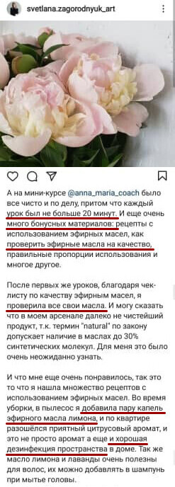 25 лет выращивания и дистилляции эфирных масел, в ТОП-10 успешных компаний прямых продаж в мире. Именно с маслами Young Living у Анны Марии случился мощный прорыв и трансформация в жизни. У нее и у близких произошли крутые изменения в здоровье, работе и в окружении.