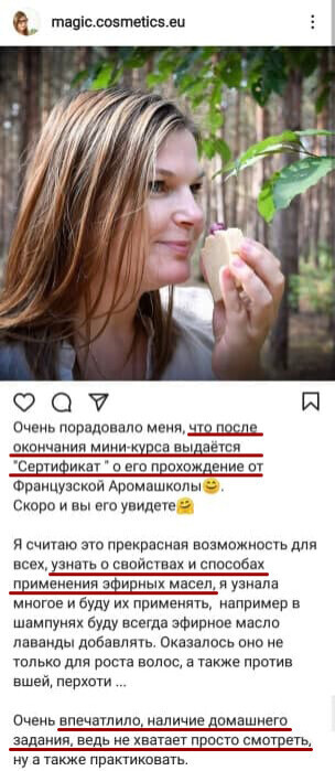 Вы получаете электронный сертификат — подтверждение прохождения курса от официального учреждения, французского Института Ароматерапии. Вы получаете базовые знания и можете применять их в повседневной жизни.